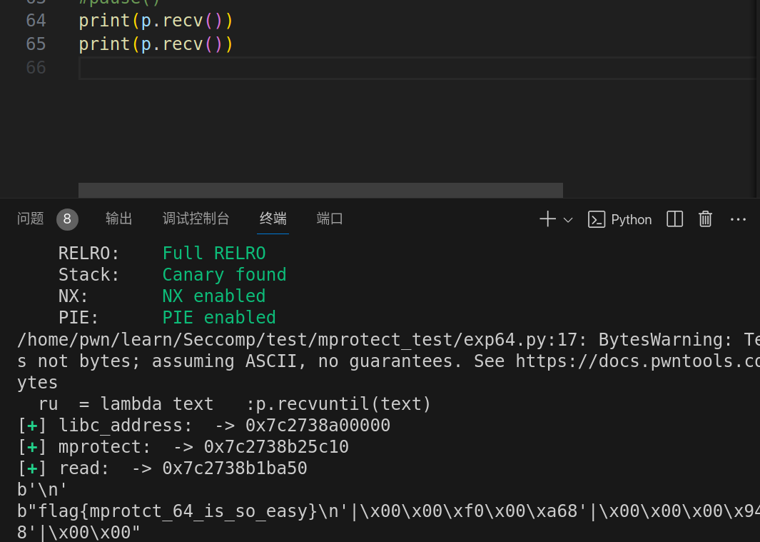 lg("libc_address: ",libc.address) lg("mprotect: ",mprotect) lg("read: ",read)
