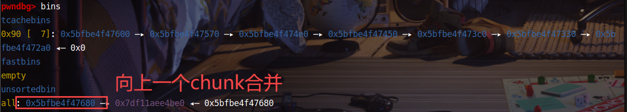 /* 如果该chunk非空,tcache bins没填充满,那么该chunk可能已经在tcache bins中了,所以要对其进行double free的检查,即检查key值 */ if (tcache != NULL && tc_idx < mp_.tcache_bins) { /* Check to see if it's already in the tcache. */ tcache_entry *e = (tcache_entry *) chunk2mem (p);