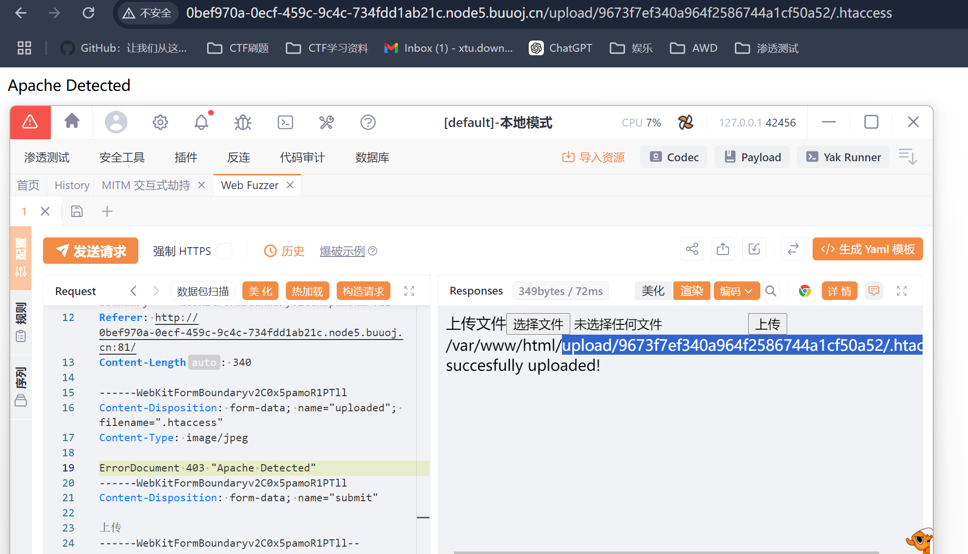 访问之后如果显示Apache Detected就说明包含有Apache,可以修改.htaccess